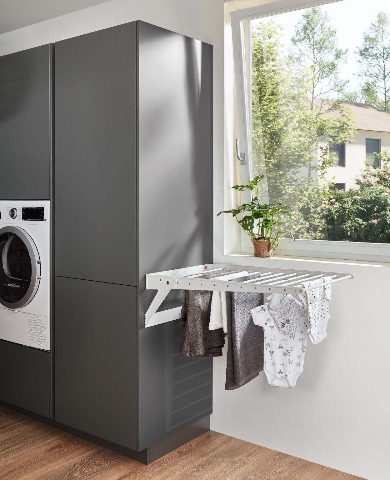 Ein Raum mit vielen Funktionen. So wird der Hauswirtschaftsraum als Stauraum genutzt, aber auch für die Wäschepflege. Da er in immer mehr Wohnungen umgesetzt wird, zeigt nobilia hier, wie dieser Raum ergonomischer, funktionaler und effektiver genutzt werden kann.